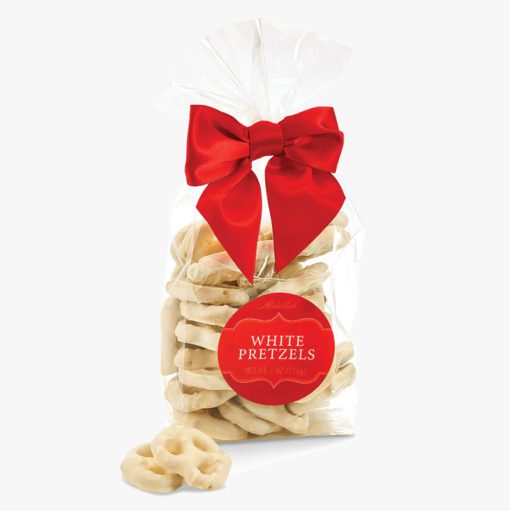 INGREDIENTS: White coating (sugar, vegetable oil [palm kernel, hydrogenated palm kernel, cottonseed], nonfat milk, milk, glyceryl lacto esters of fatty acids, soy lecithin, salt, natural and artificial flavor); Pretzels (enriched wheat flour [wheat flour, niacin, reduced iron, thiamine mononitrate, riboflavin, folic acid], salt, corn syrup, vegetable oil [may contain one or more of the following: canola, corn, soybean oil], sodium bicarbonate, yeast).
